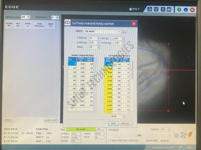 EDGE Polki Border Cutting Software is a powerful tool designed for precision cutting of intricate Polki jewelry borders. It offers advanced features like high-accuracy design mapping, automated pattern recognition, and seamless integration with cutting machines. The software enhances efficiency, minimizes material wastage, and ensures flawless execution of detailed patterns. With an intuitive user interface, it caters to both beginners and professionals. EDGE Polki Border Cutting Software supports various file formats and provides real-time previews, allowing users to perfect their designs before cutting. Ideal for jewelers and craftsmen, it revolutionizes the Polki jewelry-making process with speed and accuracy.